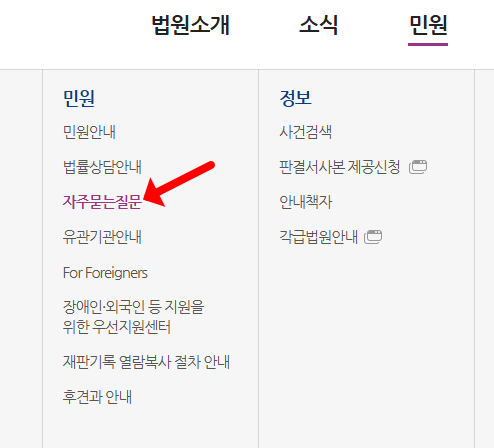 가정법원 홈페이지 바로가기를 이용하면 자주 묻는 질문(FAQ) 코너를 통해 궁금증을 빠르게 해결할 수 있습니다. 이혼, 입양, 양육비, 가족관계등록 등 다양한 주제별로 정리된 질문과 답변이 제공되어 처음 접하는 분들도 쉽게 정보를 찾으실 수 있어요. 또한 사건별 소송 절차, 필요 서류, 법률 용어 해설 등 실질적인 도움을 받을 수 있는 자료가 풍부하게 준비되어 있는 것이 특징입니다.