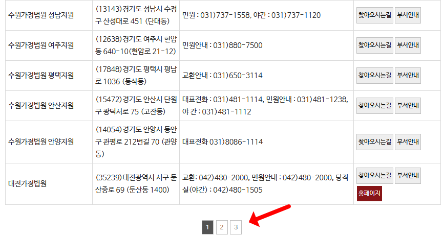 가정법원 홈페이지 바로가기로 전국 가정법원 현황을 확인해보면, 모든 시군구에 가정법원이 있는 것은 아닙니다. 가정법원이 설치되지 않은 지역에서는 해당 지방법원이 가정법원 업무를 담당하게 되어 있는데요. 예를 들어 강원, 충북, 충남, 전북, 경북, 경남 등 일부 지역은 지방법원 또는 지방법원 지원에서 이혼, 양육, 입양 등 가사사건을 처리하게 됩니다. 따라서 자신의 주소지 관할 법원을 미리 확인하시는 것이 중요하다고 생각합니다.