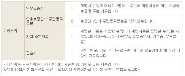 개명신청 서류