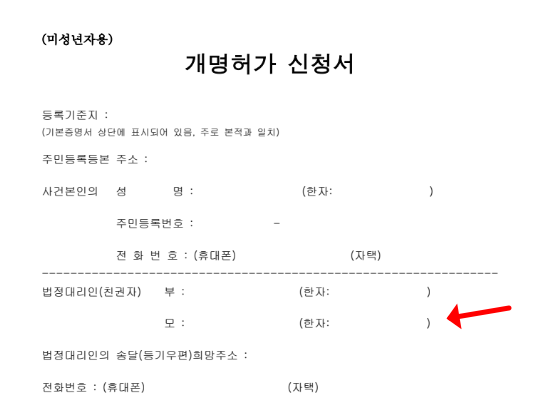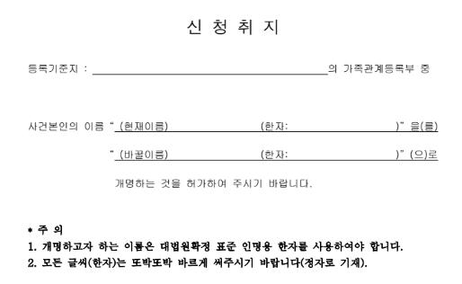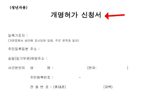 개명허가신청서 작성 방법