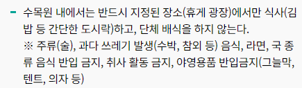 광릉수목원 예약하기로 예약을 마쳤다면, 방문 시 몇 가지 유의사항을 기억해야 합니다. 수목원 내에서는 지정된 장소에서만 간단한 식사가 가능하며, 취사와 야영은 금지되어 있어요. 또한, 반려동물 동반 입장이 불가능하니 주의해야 합니다. 식물이나 곤충을 채집하는 것도 엄격히 금지되어 있으니 카메라로 추억을 담는 것으로 만족해야 해요. 마지막으로, 수목원의 아름다움을 지키기 위해 쓰레기는 꼭 되가져가는 것이 좋습니다.