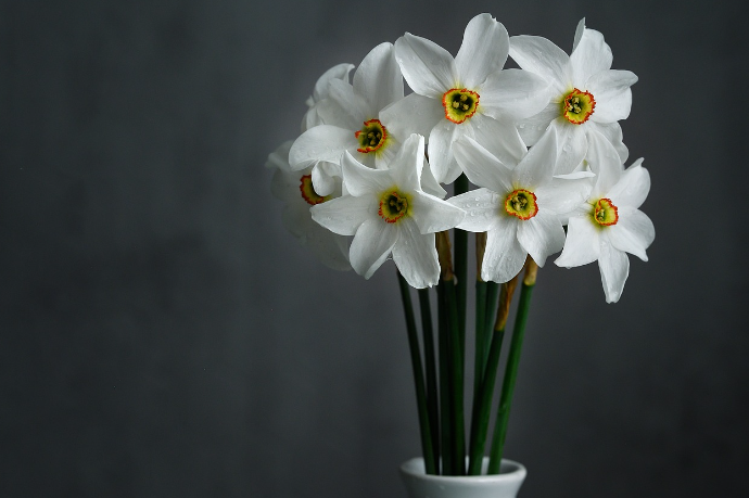 하얀 수선화의 꽃말은 "순수한 사랑", "존경", 그리고 "바람직한 사랑"입니다. 하얀색은 순수함과 결백을 상징하기 때문에, 하얀 수선화는 순결하고 깨끗한 마음을 나타냅니다. 이는 사랑의 순수성과 진실된 마음을 강조하며, 상대방에 대한 깊은 존경과 사랑을 의미하는 꽃말로 통합니다.