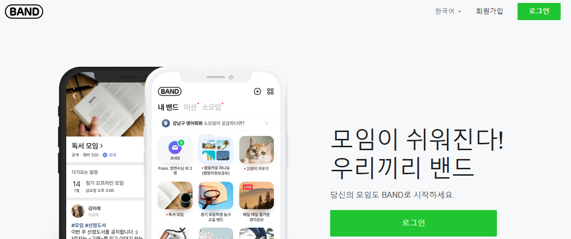 - band.us 접속 후 로그인