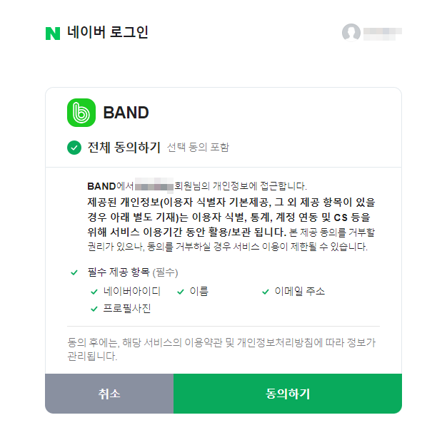 - BAND 이용 동의하기