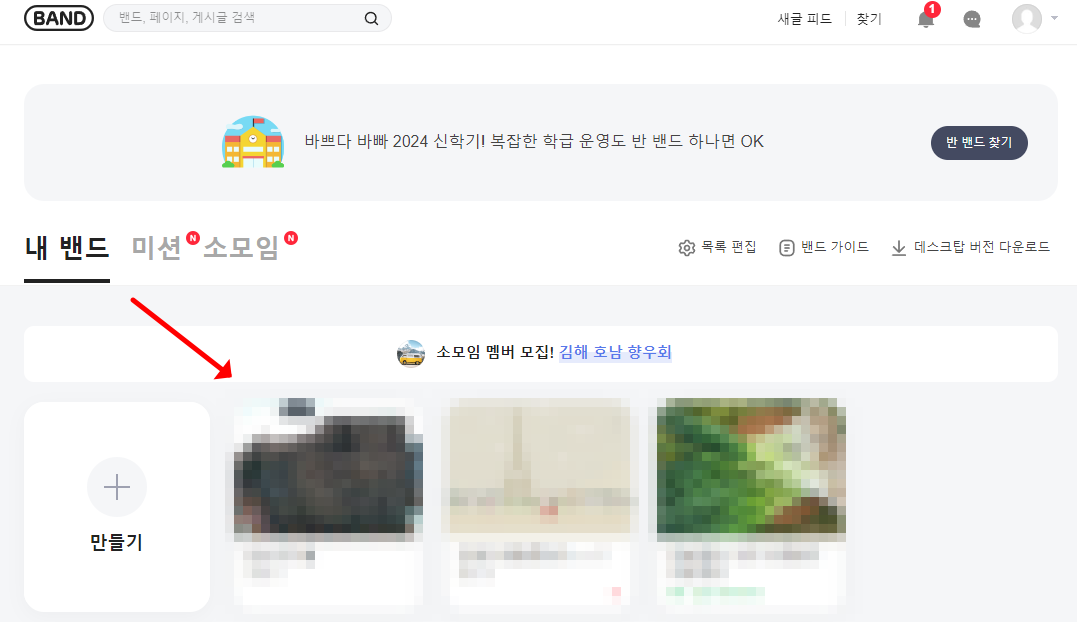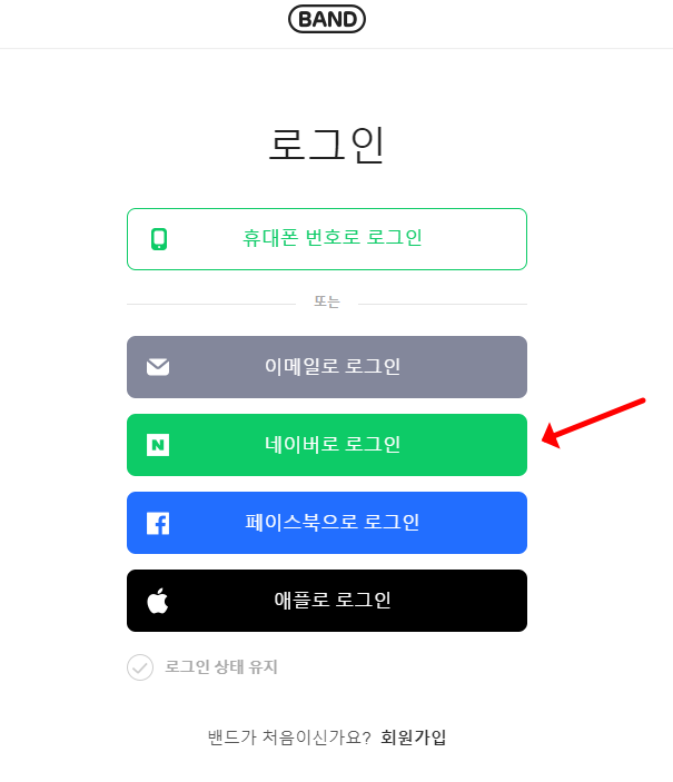 - band.us 접속 후 로그인