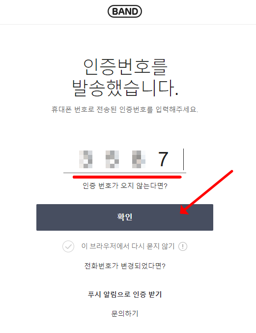 - 휴대폰 번호로 인증 숫자 수신, 입력 후 확인
