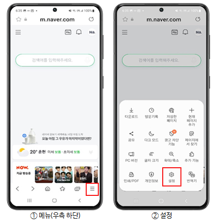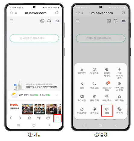 모바일 크롬에서 설정하기