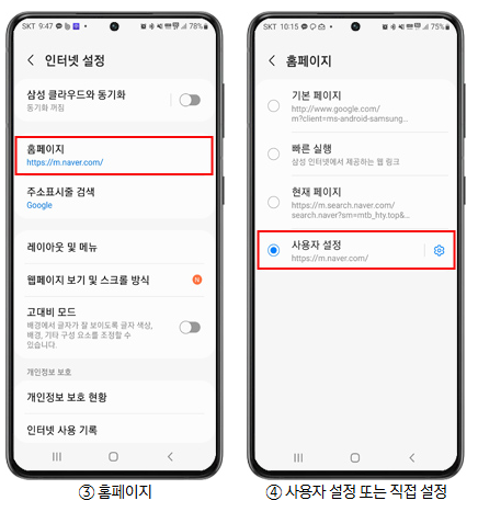 삼성 인터넷에서 설정하기