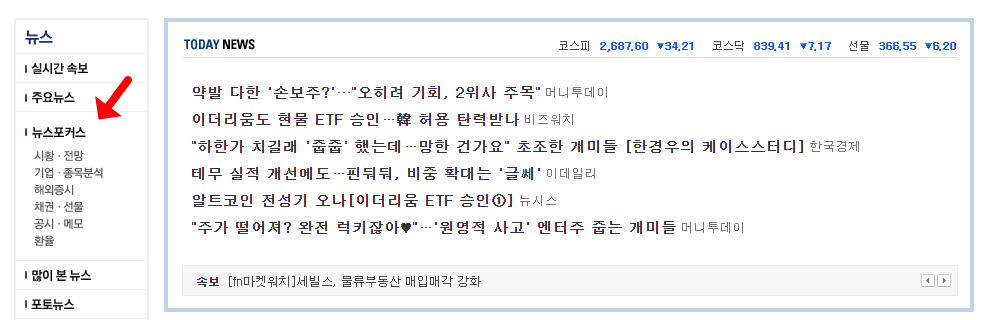 네이버 증권 바로가기의 뉴스 메뉴는 경제, 금융, 기업, 정책 등 다양한 분야에 대한 최신 뉴스를 제공하고 있어요. 국내 및 해외 시장의 최신 동향과 변화를 파악하는 데 필수적입니다. 이를 통해 투자자는 시장의 빠른 변동에 대응하고, 정보 기반의 의사결정을 할 수 있습니다. 최근 뉴스들은 경제 전반의 큰 이슈뿐만 아니라, 특정 이벤트나 발표가 금융 시장에 미치는 영향에 대해서도 깊이 있는 분석을 제공한다는 장점이 있어요.