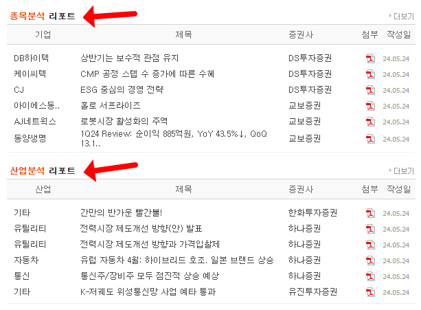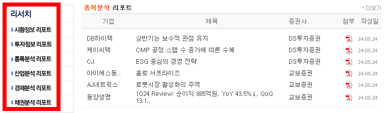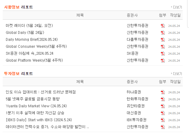 네이버 증권 바로가기 에서 리서치 메뉴는 시장 분석 보고서, 업종 분석, 전문가 예측과 같은 투자 분석 정보를 제공합니다. 국내 증권사들이 리포트 형식으로 작성한 PDF 파일들이 업로드 되어 있습니다. 이를 통해 투자자들이 시장 트렌드를 이해하고 전략을 수립하는 데 도움을 줍니다. 분석 보고서는 종종 기업 성과와 경제 데이터를 근거로 하여 시장 전망을 제시하며, 이를 통해 투자자는 장기적인 시장 방향성에 대한 통찰을 얻을 수 있습니다.