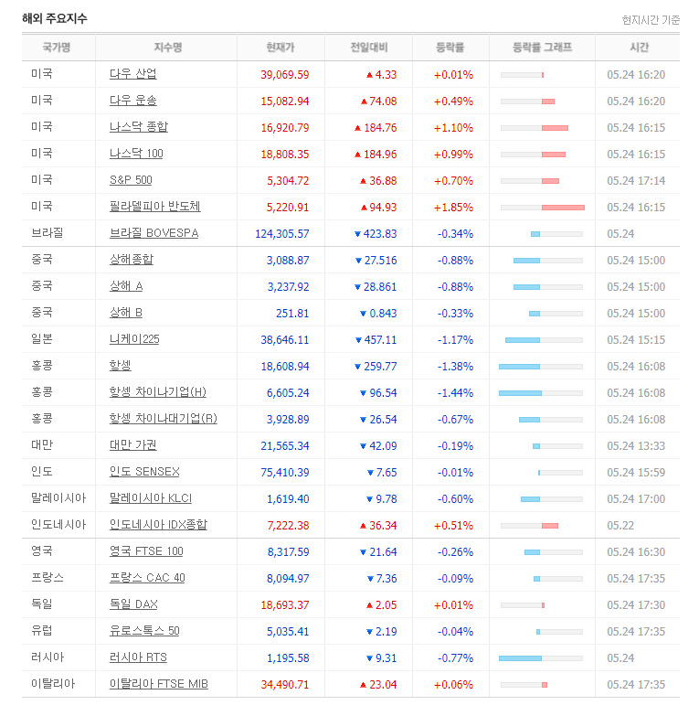 네이버 증권 바로가기에서 해외증시 메뉴는 미국, 유럽(영국, 독일, 프랑스 등), 아시아(상해, 항셍, 니케이225 등) 등 주요 글로벌 시장의 주식 정보를 다루고 있습니다. 주요 글로벌 지수(예: 다우존스, 나스닥, 니케이) 및 각 나라별 주요 기업들의 주식 정보, 실시간 가격 변동, 시장 뉴스 등을 보실 수 있습니다. 현재가, 전일대비, 등락률 등 주요 지수를 한눈에 파악할 수 있습니다.