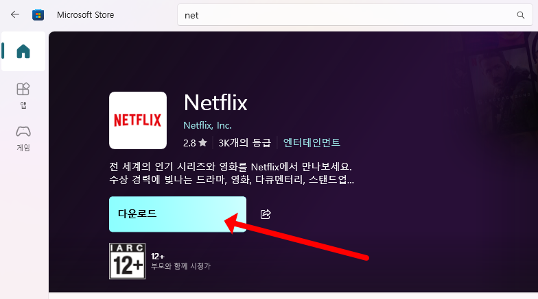 먼저 설치를 하시기 위해서는 먼저 Windows 10 이상의 운영체제를 사용하는 PC에서 Microsoft Store를 실행하셔야 합니다. 시작 메뉴에서 ‘Store’를 검색한 뒤, Microsoft Store에 접속해서 상단 검색창에 ‘넷플릭스’를 입력하면 공식 Netflix 앱이 나타나죠. 해당 앱을 선택한 후 ‘설치’ 버튼을 클릭하면 간단하게 다운로드와 설치가 진행됩니다. 설치가 완료되면 시작 메뉴나 바탕화면에서 넷플릭스 앱을 실행할 수 있습니다. 아래의 링크에서 마이크로소프트 스토어를 바로 열고 설치를 진행해보세요.