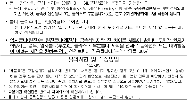 노인 틀니 지원 본인부담금 안내