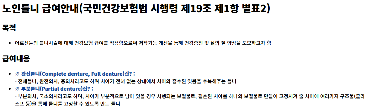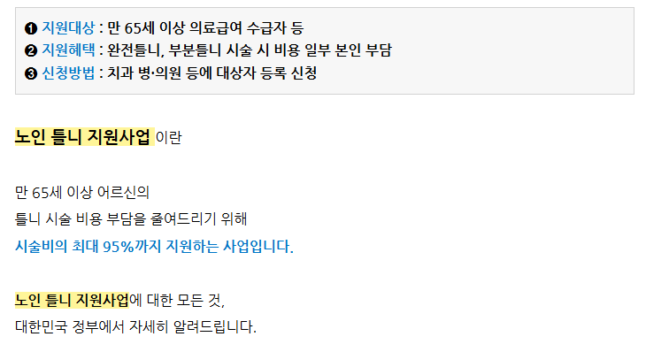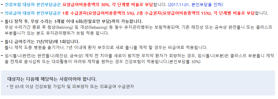 노인 틀니 지원 본인부담금 개요