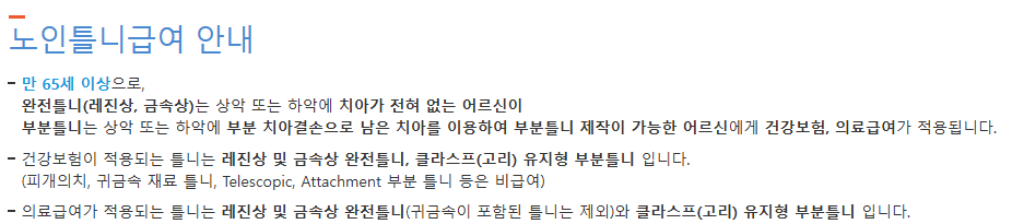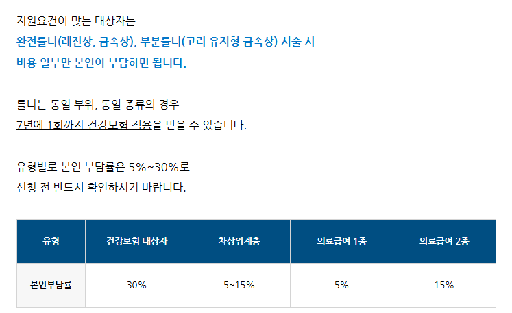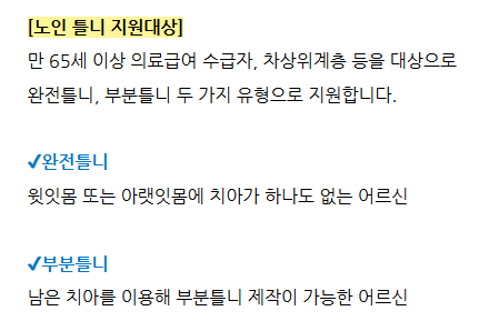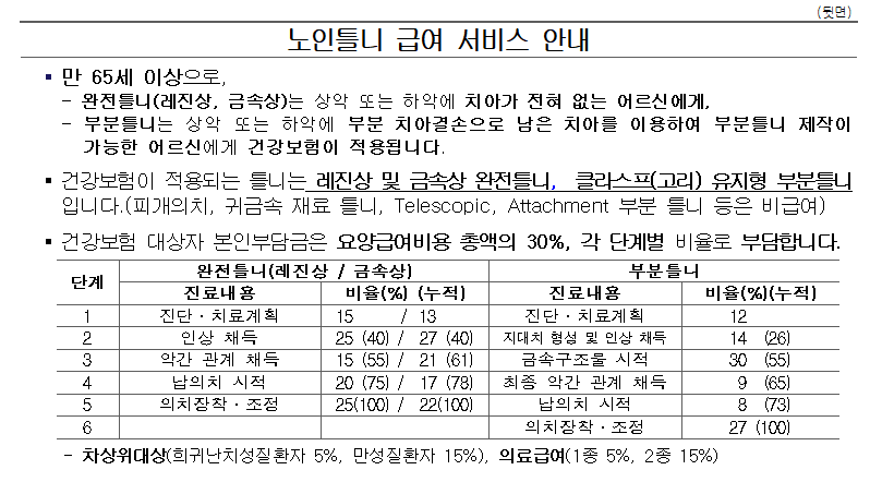 노인 틀니 지원 본인부담금 안내
