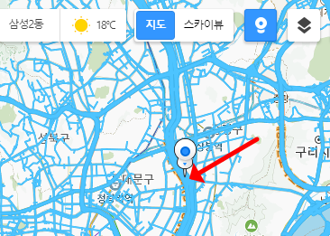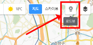 걸어드린 링크를 접속하시게 되면 map.kakao.com으로 이동이 되실 것입니다. 여기서 상단의 아이콘 중에 카메라 처럼 생긴 아이콘이 있습니다. 이것이 바로 로드뷰인데요. 로드뷰 아이콘을 클릭하면 지도화면에 길들이 하늘색으로 표시가 됩니다. 색칠이 표시된 길은 어느곳이든 데이터가 있는 것이므로 클릭만 하면 그 주변의 도로와 건물 이미지를 바로 확인할 수 있게 됩니다.