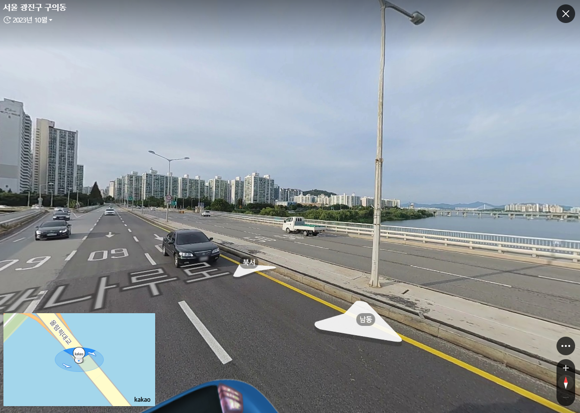 인터넷 브라우저 창모드를 쓰고 계시다면 파노라마 360도 뷰를 이용하여 촬영된 생동감있는 로드뷰를 감상하기 어렵습니다. '전체화면'을 클릭해서 더 크고 넓은 화면으로 도로의 개방감과 도시의 전경을 한눈에 살펴보세요. 전체화면 종료는 ESC를 누르면 해제됩니다.