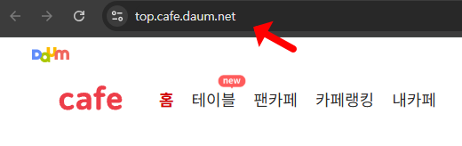 - 웹사이트 주소 복사: 먼저, 다음카페의 URL (https://top.cafe.daum.net/) 을 복사합니다.