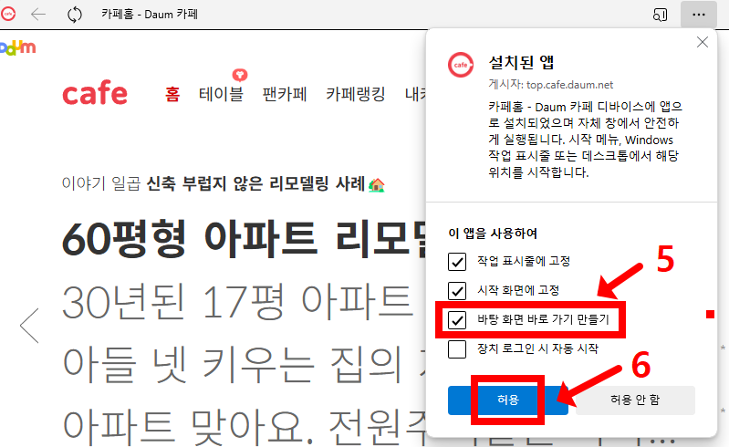 엣지 브라우저에서도 다음카페 바로가기를 쉽게 만들 수 있습니다.