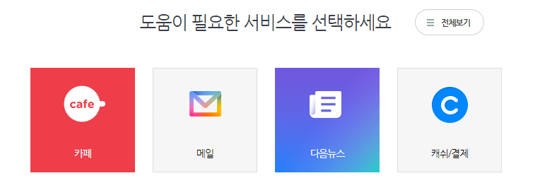 다음 고객센터 전화번호를 알아보기전, 상단의 링크를 통해 웹 고객센터에 접속해서, 나에게 도움이 필요한 서비스를 선택해서 알아보는 것을 추천드립니다. 여기서는 질문과 답변(FAQ) 형태로 정보를 제공해주고 있어서 나에게 생긴 문제와 비슷한 사례를 찾아보며 답을 손쉽게 확인할 수 있기 때문입니다. 만약 문제가 해결되지 않는다면 전화를 하는 것이 좋은 방법일 것입니다.