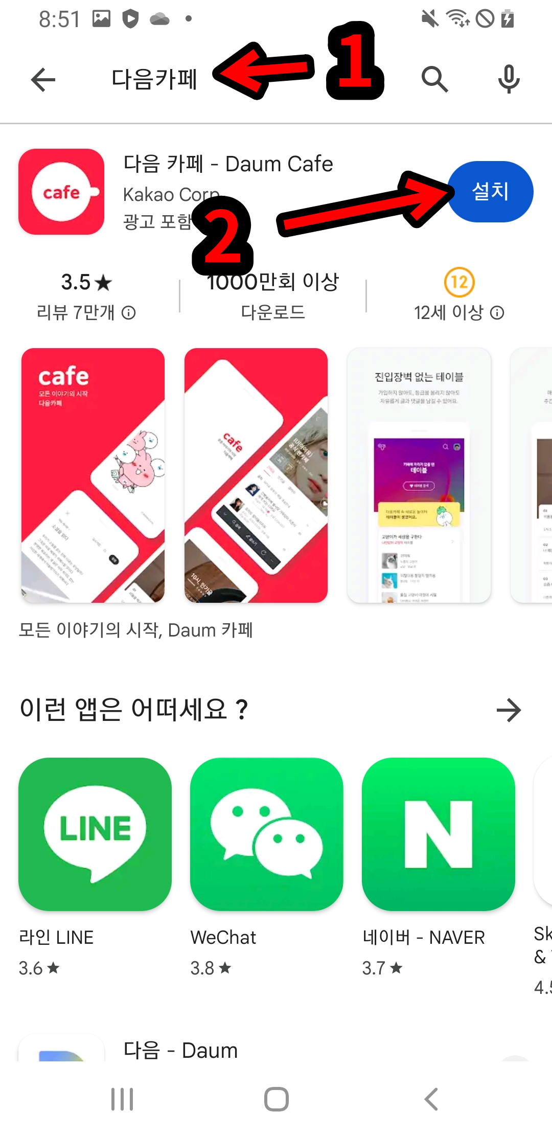 다음 내카페 바로가기 앱 사용하기