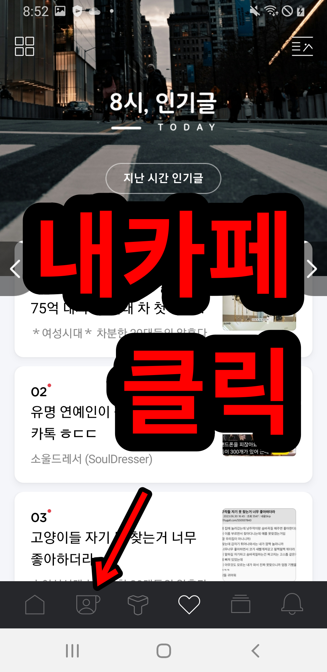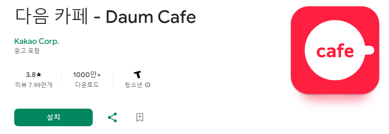 구글 플레이스토아를 휴대폰에서 열어주신 뒤, 검색창에 다음카페를 입력해서 설치하세요. 어플을 실행해시면 바로 열리게 되는데, 로그인을 해주신 뒤 하단의 2번째 아이콘을 클릭하면 다음 내카페 바로가기 하실 수 있습니다! 이로써 모든 방법에 대한 소개가 끝났습니다 도움이 되셨다면 좋겠네요.