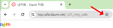 제가 아까전에 올려드린 링크를 들어가보시면 위 사진처럼 주소가 top.cafe.daum.net/_c21_/my_cafe 로 되어있을 겁니다. 제가 바로 이동될 수 있게 세팅해놨는데요. 크롬을 쓰시는 분들은 주소창 옆에 별표가 있습니다. 이는 과거 IE의 '즐겨찾기'와 유사한 기능이라고 보시면 됩니다. 아무튼 새 탭을 열고 아래에 자그만 즐겨찾기를 클릭하시게되면 다음부터 접속이 쉽게 되십니다.