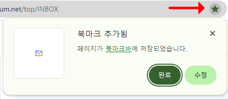 - 다음 메일에 들어간 상태에서 주소창 우측 별표 표시를 클릭합니다.