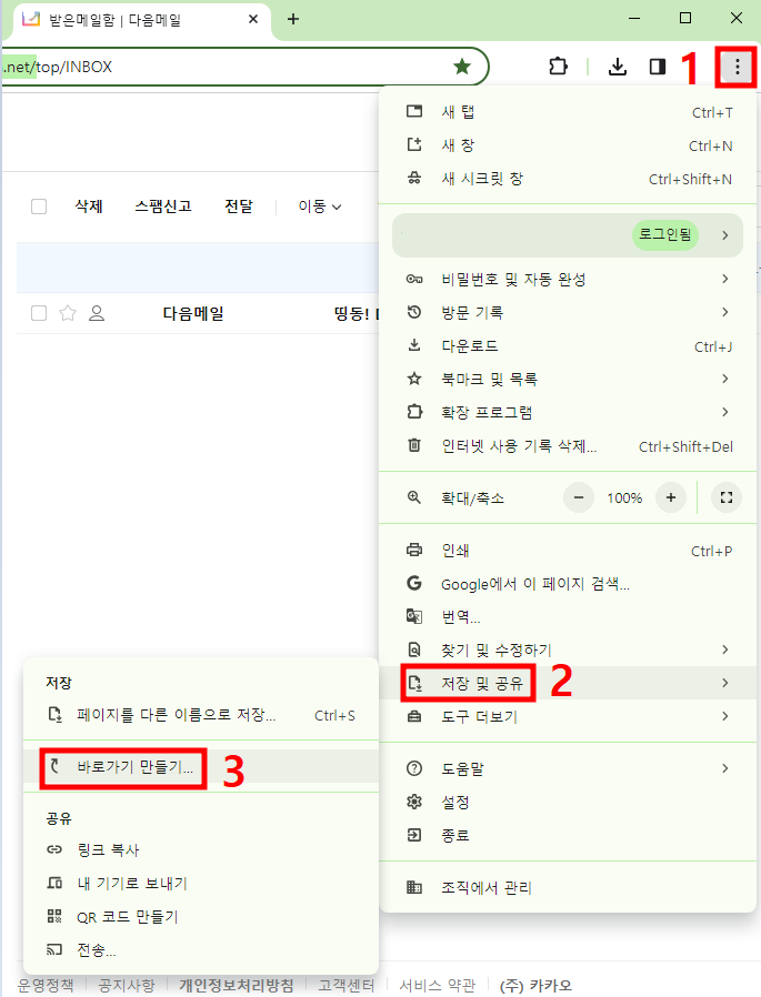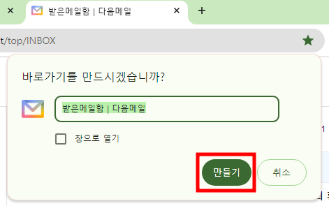 다음 메일 바로가기 만드는 방법