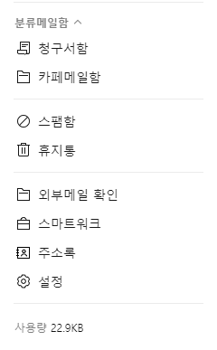 - 내게쓴메일함 : 간단한 업무자료나 백업용도로 활용하기 좋습니다. 자신에게 이메일을 보내서 기록용도로 사용하기 좋아요.