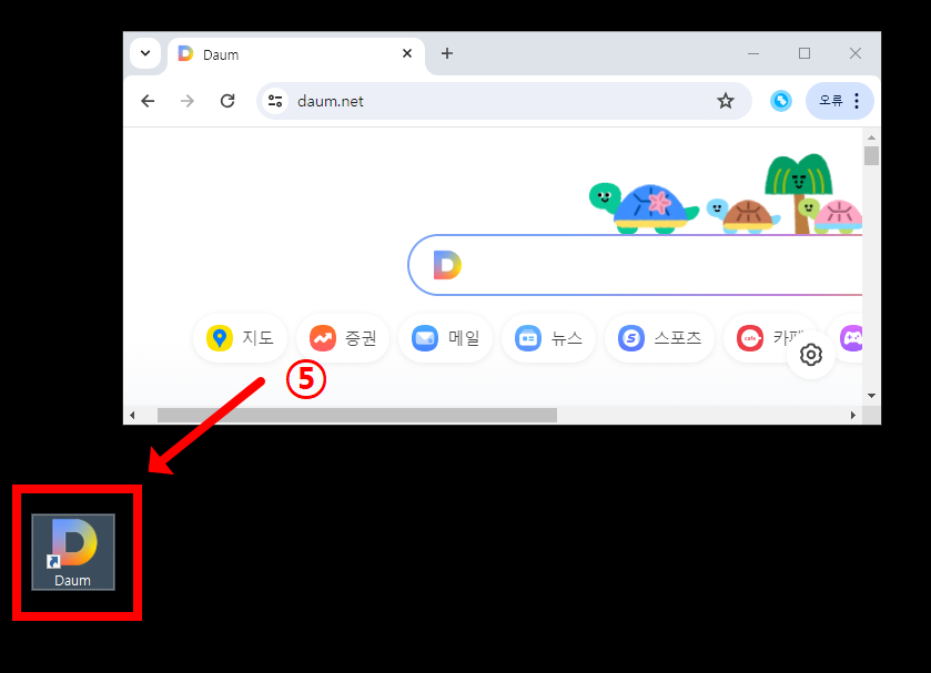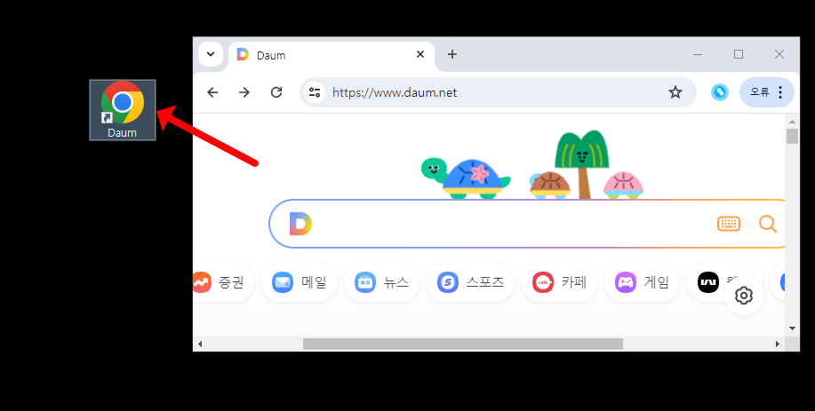 다음 바탕화면 바로가기 아이콘 만들기 👈