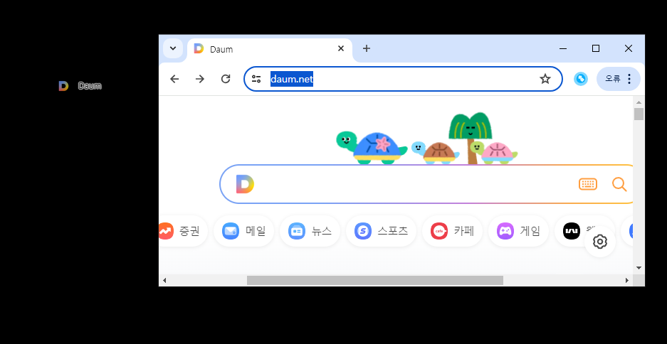 - 크롬 브라우저를 키고 daum.net에 접속합니다.