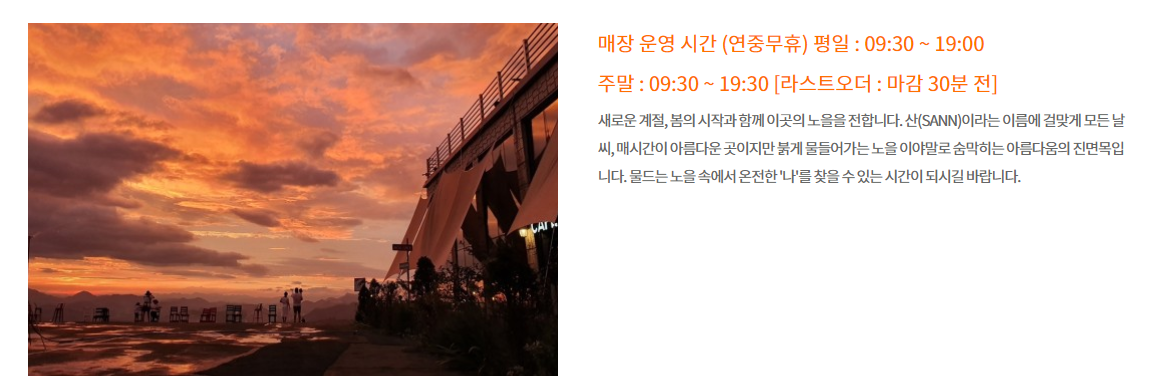 단양 가볼만한곳 베스트10 에 개인적으로 좋았던 곳을 넣어보려고 하는데요. 카페 산은 양방산 정상에 위치한 카페로, 멋진 풍경을 배경으로 사진을 찍을 수 있는 핫플레이스입니다. 특히 해가 지기 전 노을이 아름다워 많은 사람들이 찾는 곳입니다. 카페 산은 패러글라이딩 활공장 옆에 위치해 있으며, 멋진 뷰와 함께 여유로운 시간을 보낼 수 있습니다. SNS와 방송을 통해 많은 인기를 끌고 있는 이곳에서 단양의 풍경을 배경으로 멋진 사진을 남겨보세요.