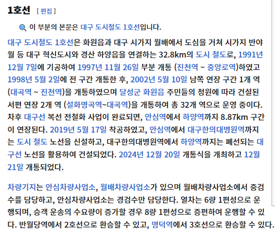 *참고 자료 및 이미지 출처 : 위키백과, 카카오맵, 카카오지하철, 대구, 인천교통공사 홈페이지