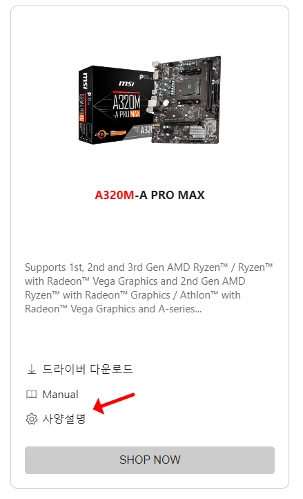 - 확인한 메인보드 모델명을 가지고 제조사의 공식 웹사이트를 방문합니다.