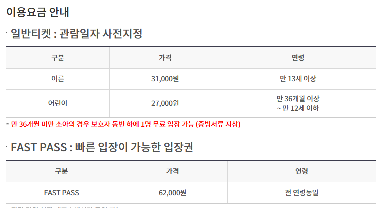 롯데타워 전망대 요금, 예약, 할인에 대해 먼저 요금부터 살펴보겠습니다. 일반 티켓의 경우, 어른(만 13세 이상)은 31,000원, 어린이(36개월 이상 ~ 만 12세 이하)는 27,000원입니다. Fast Pass 티켓은 전 연령 동일하게 62,000원이며, 현장에서만 구매 가능하죠. 서울스카이와 아쿠아리움 패키지 티켓도 있는데, 어른은 58,000원, 어린이/경로는 52,000원입니다. 요금은 시즌이나 특별 이벤트에 따라 변동될 수 있으니 방문 전 확인하시는 것이 좋아요. 아래에서 요금에 대해 자세히 알아보시기 바랍니다.