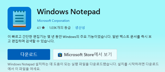 마이크로소프트 메모장 무료 다운로드