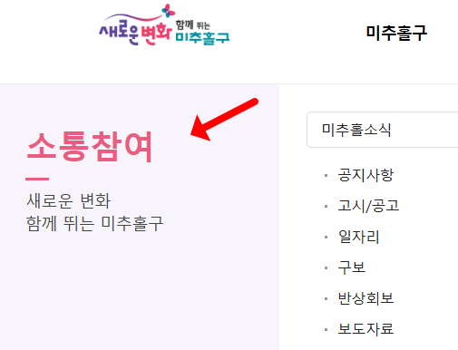 마지막으로 미추홀구청 홈페이지 바로가기 "소통참여" 코너를 통해 다양한 구민 참여 공간을 이용할 수 있습니다. 구청장에게 바란다, 자유게시판, 설문조사 등 다양한 채널을 통해 구민들의 의견을 수렴하고 있죠. 또한 주민참여예산, 정책제안 등을 통해 구정에 직접 참여할 수 있는 기회도 제공되고 있습니다. 이러한 참여 공간을 통해 구민들의 목소리가 구정에 반영되고, 더 나은 미추홀구를 만들어갈 수 있을 것 같습니다. 구민 여러분들도 이런 참여 공간을 적극 활용해보시는 것은 어떨까요?