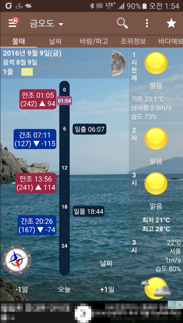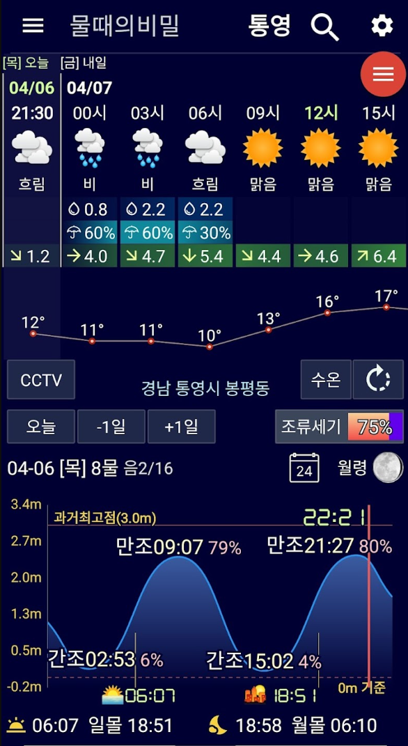 바다날씨 예보 어플 앱 추천의 2번째 앱은 바로 바다타임입니다. 남해, 동해, 제주 등 한국의 주요 해안 지역의 조석 예보와 주말, 주간, 내일 날씨 정보를 상세히 제공합니다. 수온, 낚시 포인트 정보도 포함되어 있어 해양 스포츠 및 낚시 활동 에 매우 유용합니다. 낚시 포인트를 알려주기 때문이죠. 또한 만조, 간조, 일출, 일몰 정보도 제공하고 있으며, 실시간 해안 CCTV 영상을 통해 현재의 해양 상황도 파악할 수 있습니다.