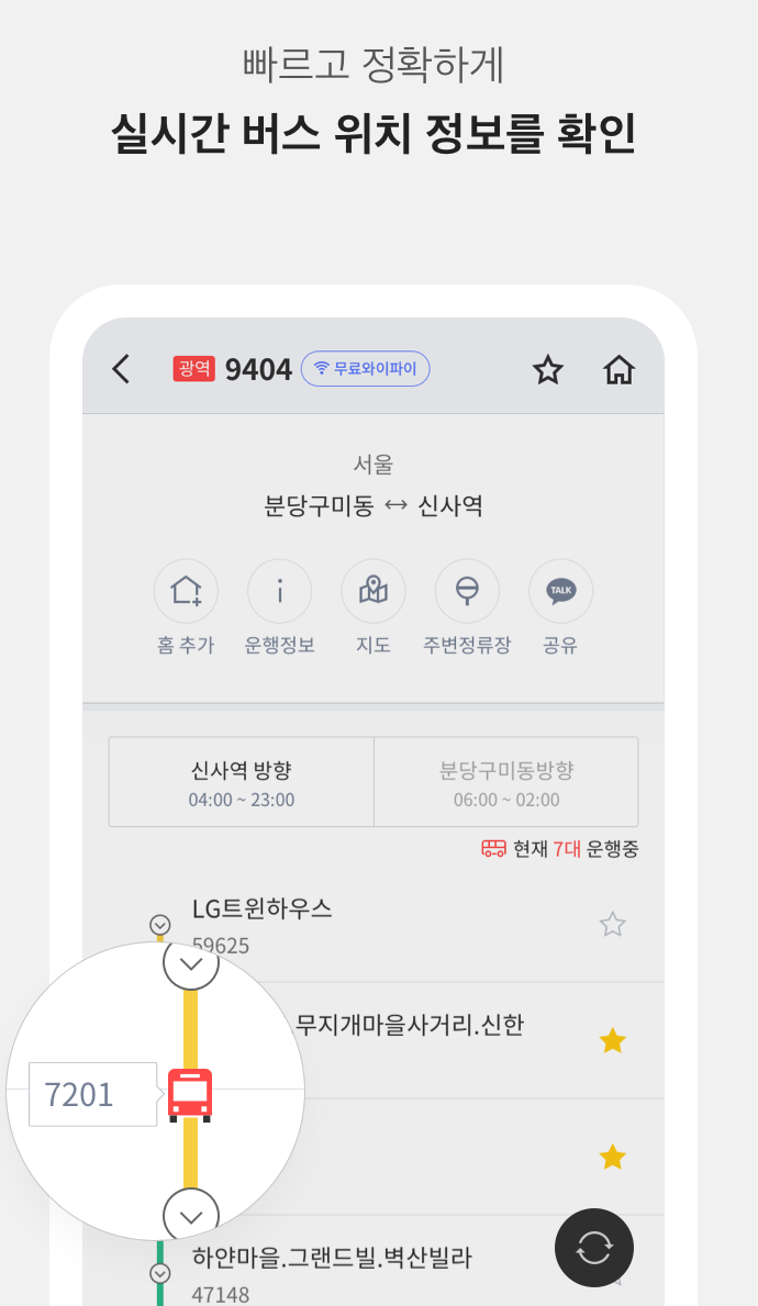 버스 노선 검색 방법에서 가장 첫번째로 소개해드릴 것은 카카오버스입니다. 다음 포털과의 연계성으로 지도 정보와 콜라보가 잘되어 있습니다. 따라서 전국의 버스 노선과 실시간 도착 정보를 제공하며, 버스 좌석의 유무, 정류장 위치, 교통 상황 정보 등도 확인할 수 있는 매우 인기 있는 앱입니다. 사용자가 자주 이용하는 노선을 즐겨찾기로 저장하여 쉽게 접근할 수 있습니다