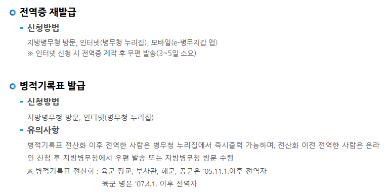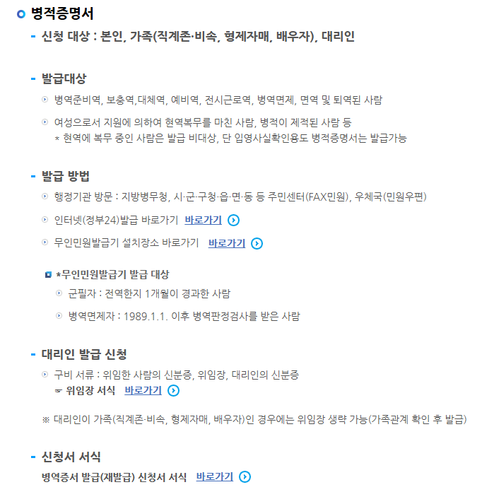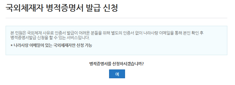 국외체재자 및 특수 상황별 병역증명서 발급 방법
