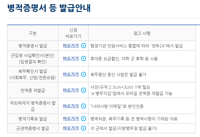 *자료 및 이미지 출처 : 정부24, 병무청 공식 홈페이지