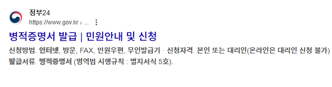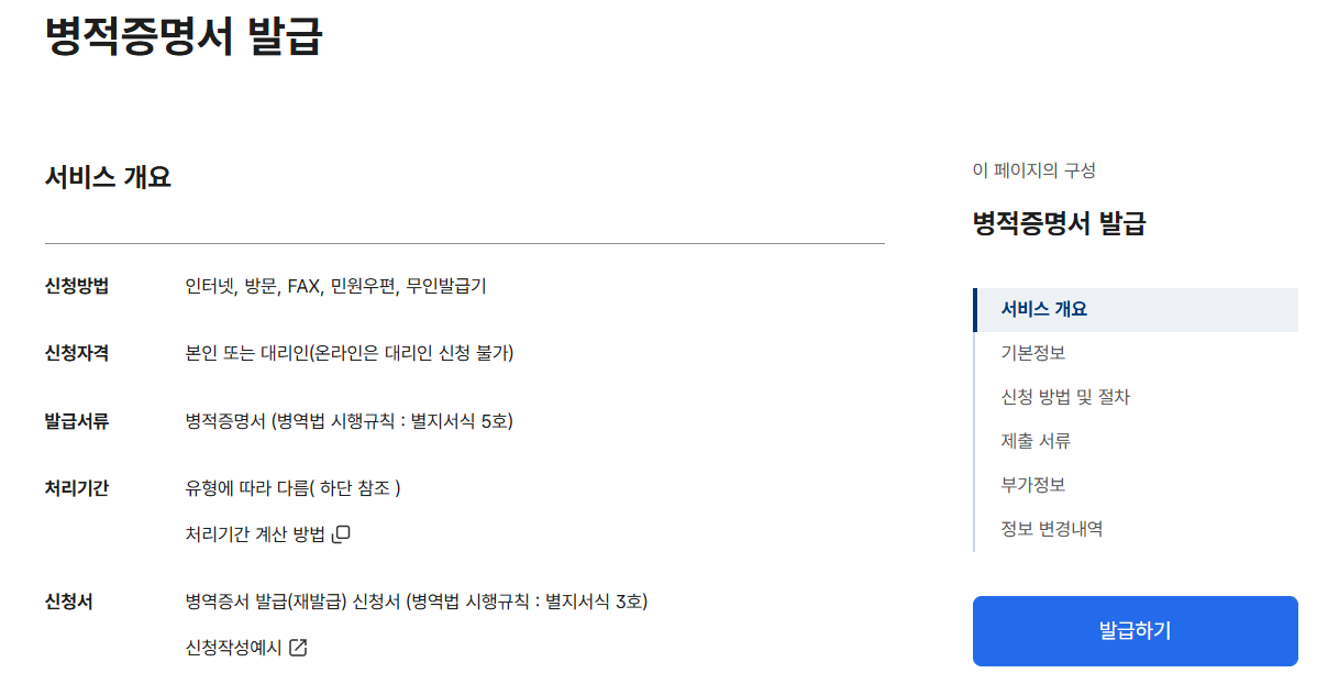 병적증명서 인터넷발급
