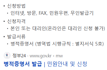 병역 관련 증명서 종류와 용도