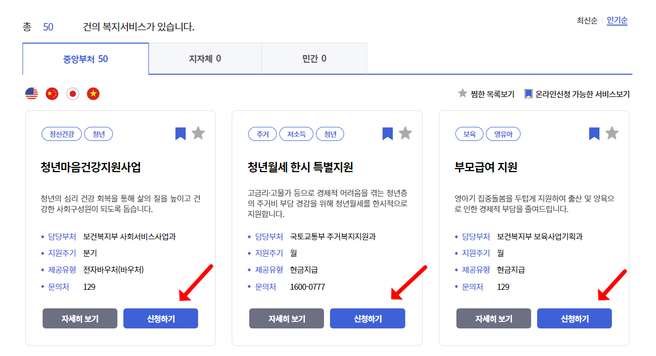 5. 서비스 조회만 가능한 경우가 있고, 직접 홈페이지에서 신청할 수 있는 경우가 있습니다. 이를 유의하시기 바랍니다.