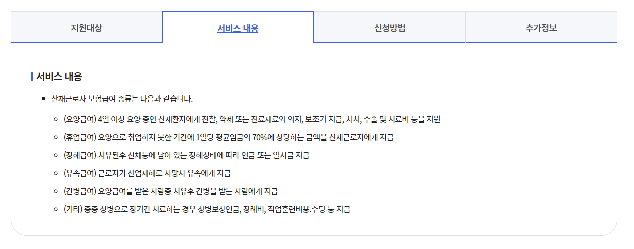 복지로 홈페이지 (bokjiro.go.kr) 2번째로 많이 조회되는 서비스 중 하나인 산재근로보험급여는 업무상 부상이나 질병으로 인해 요양이 필요한 근로자들을 지원하기 위한 제도입니다. 이는 근로복지공단을 통해 관리되며, 다양한 급여 형태가 있습니다. 많이 찾으시는 정보인 만큼 간략하게 정리해드리도록 하겠습니다.