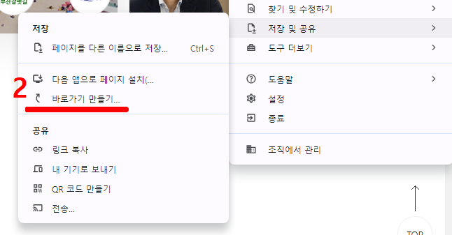 2. 크롬 설정에서 바로가기 만들기