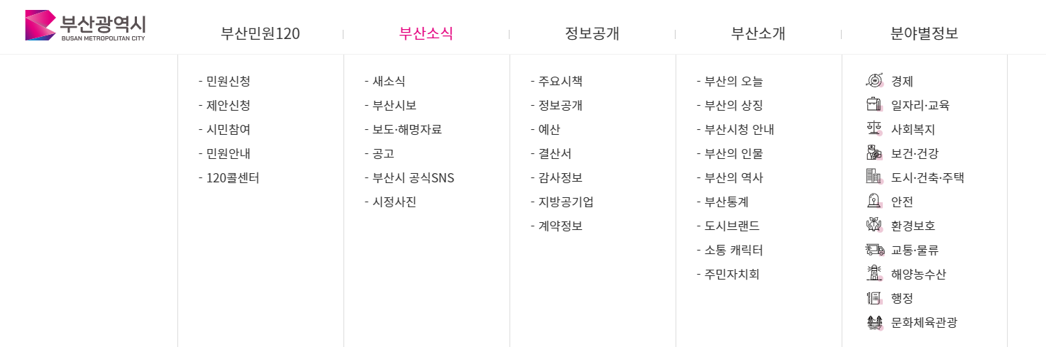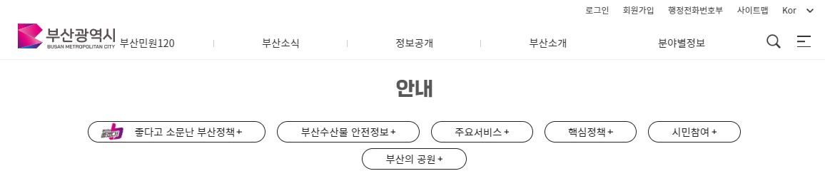 부산시청에서 제공하는 서비스