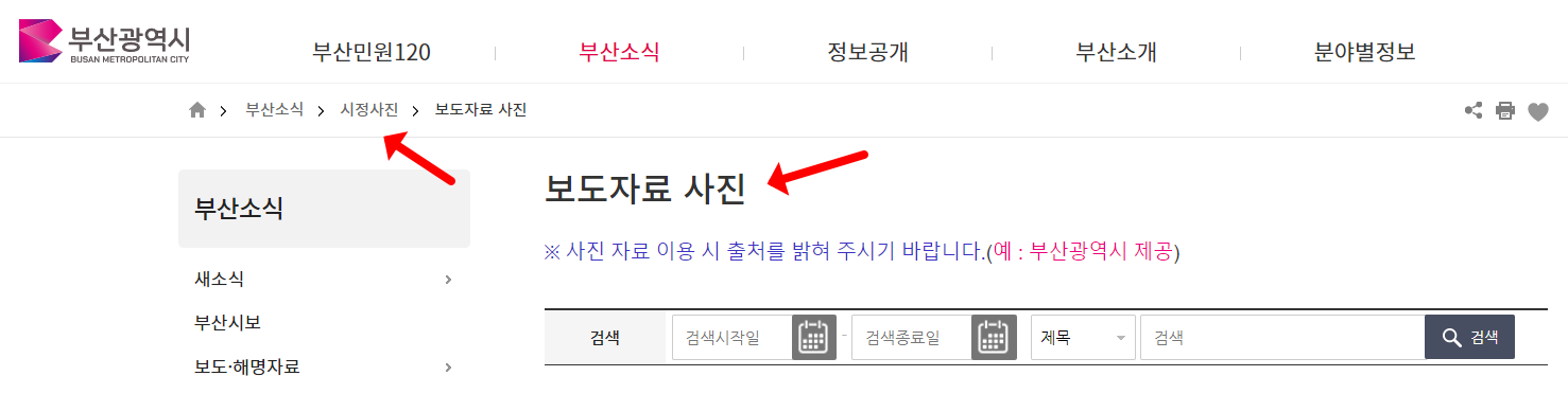 - 시정 사진: 부산시의 중요 행사나 프로젝트의 사진을 보도자료 형태로 제공하며, 이를 통해 시정 활동을 시각적으로 확인할 수 있습니다.