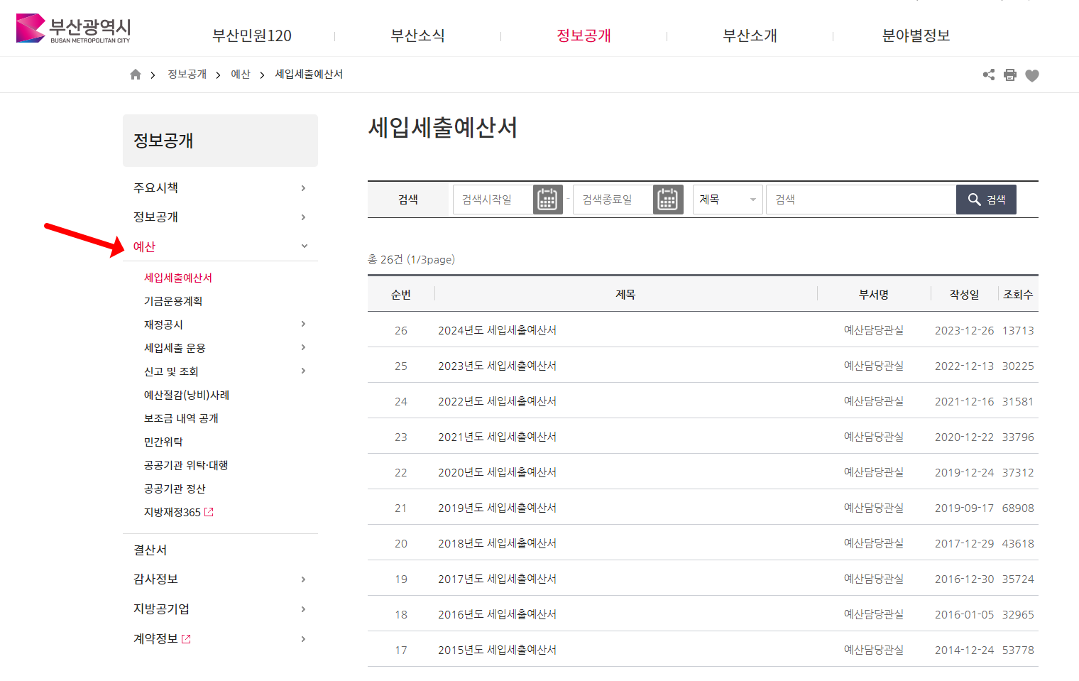 - 예산 정보: 시의 예산 집행 현황과 결산 정보, 기금 운용 계획 등을 상세히 제공합니다. 이 정보를 통해 시민들은 부산시의 재정 상태와 예산 사용 내역을 확인할 수 있습니다.